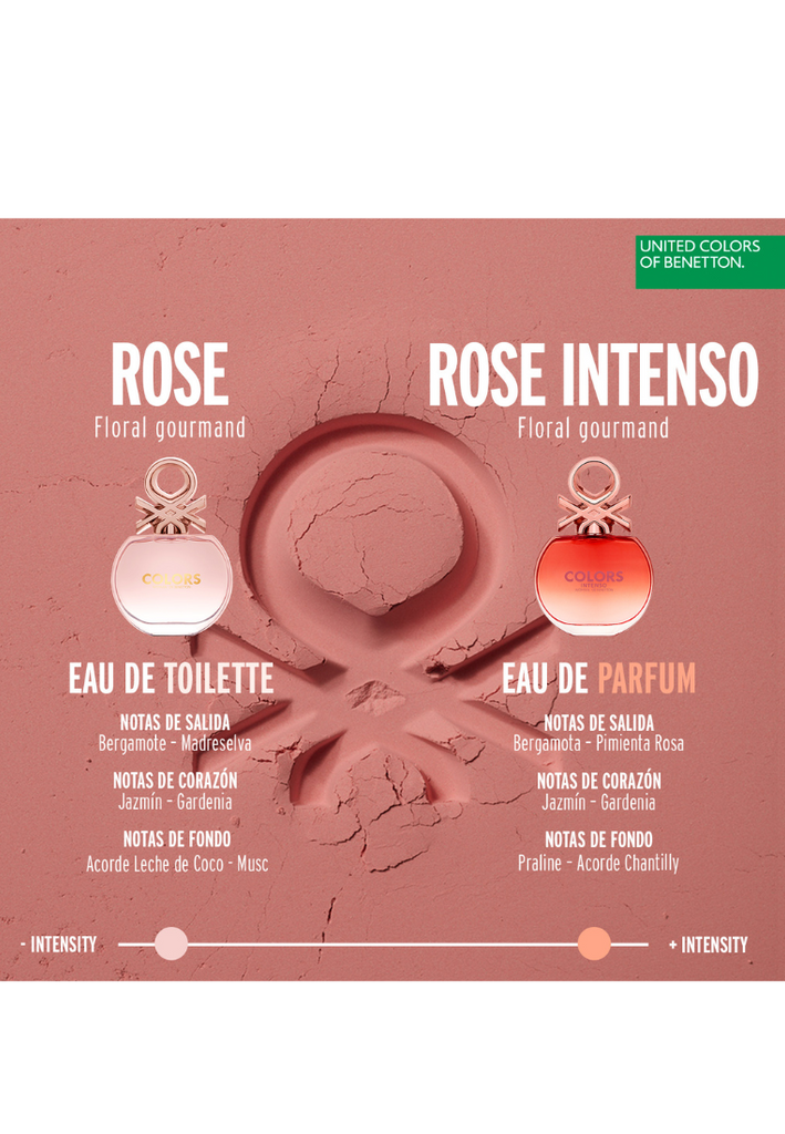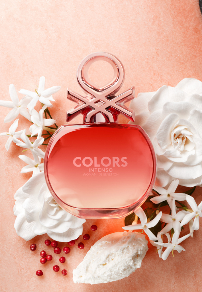 Colors Rose Intenso begins with a natural burst of citrus and surprises with its spicy heart, its bouquet of white flowers, and a touch of sweetness.